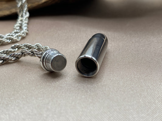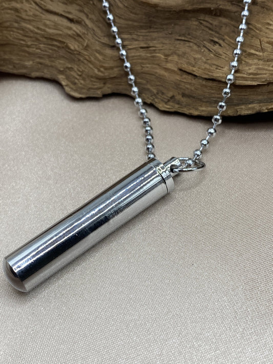 Silver Cylinder Urn Necklace with Ball Chain - Engravable for Ashes