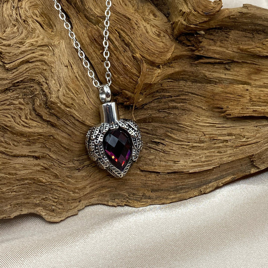 Purple Amethyst Heart Cremation Necklace with Angel Wings - Urn Jewelry