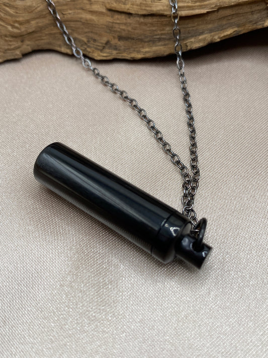 Black Cylinder Cremation Urn Necklace for Men – Memorial Jewelry for Human or Pet Ashes