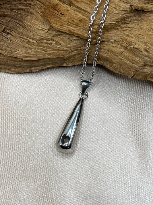 Teardrop Cremation Urn Necklace with Heart Cutout – Memorial Jewelry