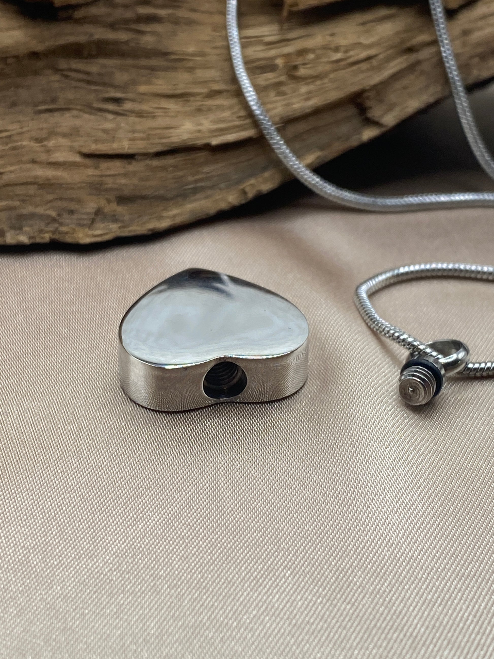 Includes: Heart-shaped urn pendant, stainless steel chain, elegant velvet bag, filling kit, microfiber cloth