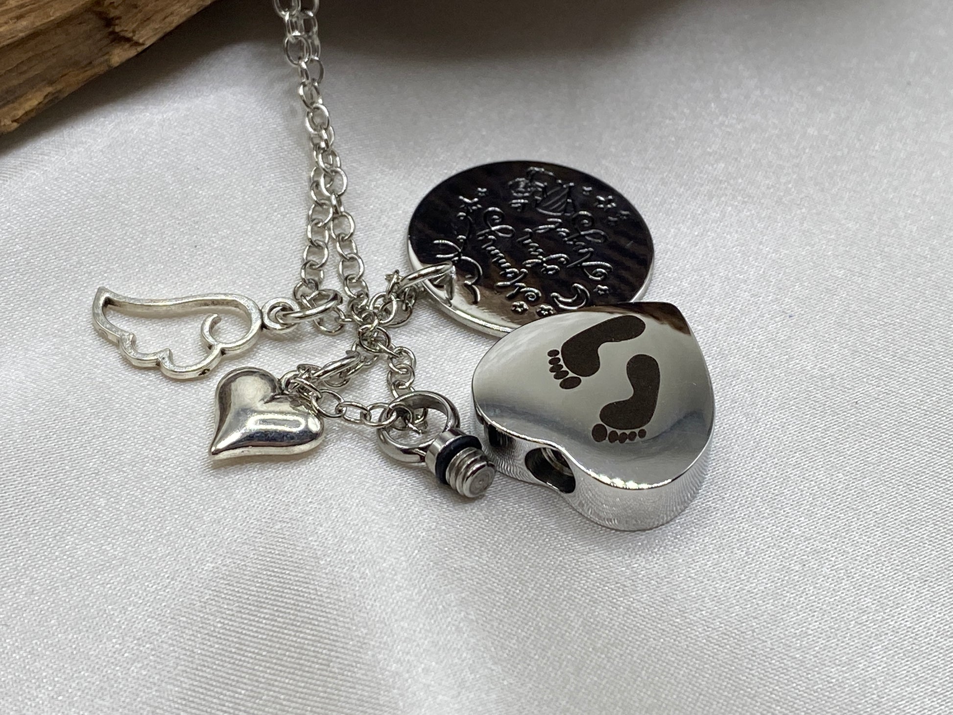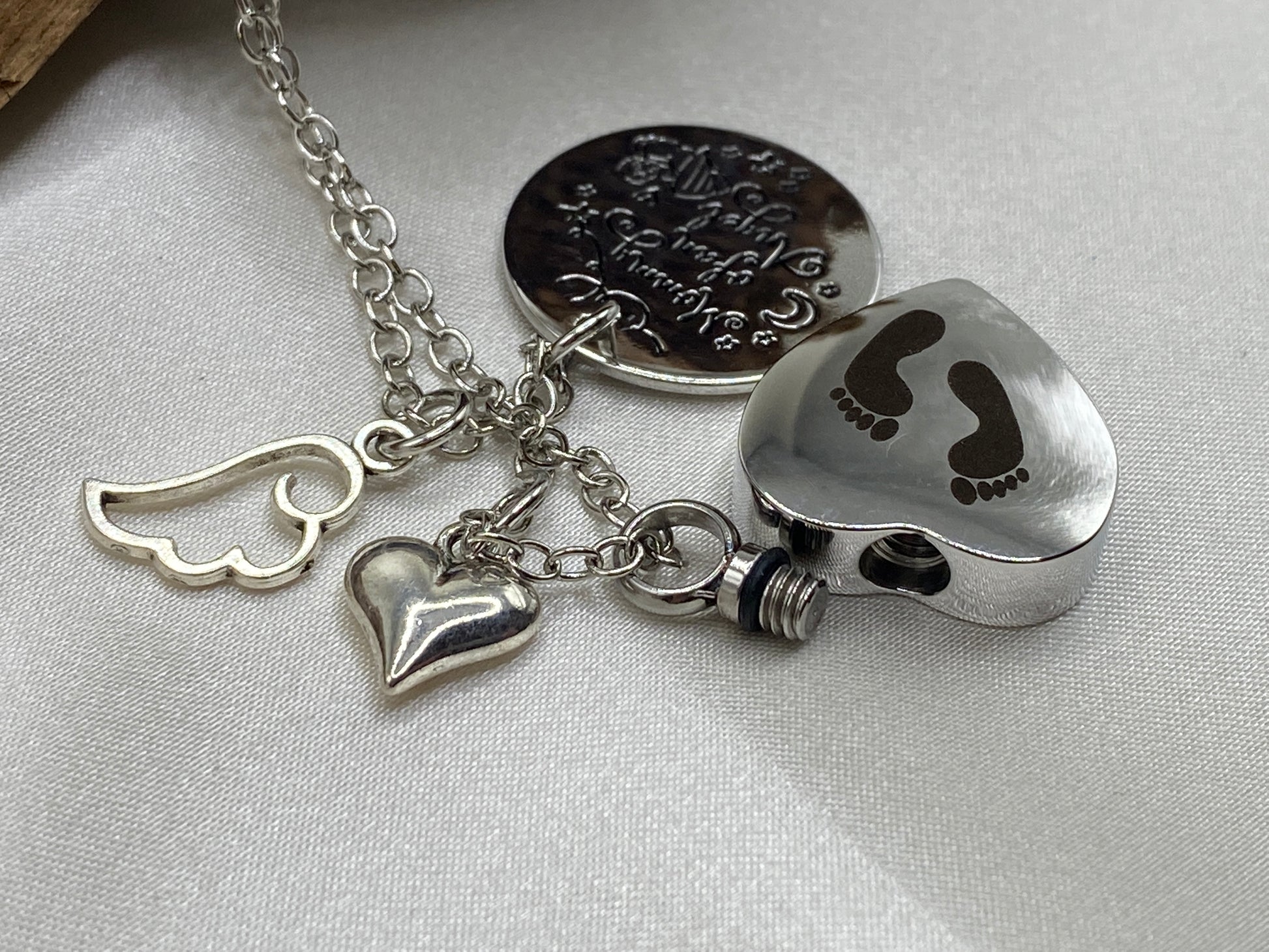 Angel Wing Heart Urn Necklace – Mommy of an Angel Engraved Keepsake Jewelry