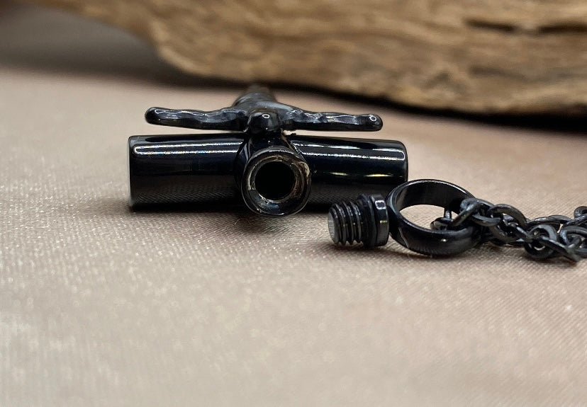 Keep your loved one close to your heart with our Black Stainless Steel Cremation Urn Cross Necklace with Jesus. This elegant memorial urn jewelry is crafted from high-quality 316 black stainless steel, ensuring durability and long-lasting wear. Designed to hold a small amount of ashes or a lock of hair, this necklace is a meaningful way to keep the memory of your loved one alive.