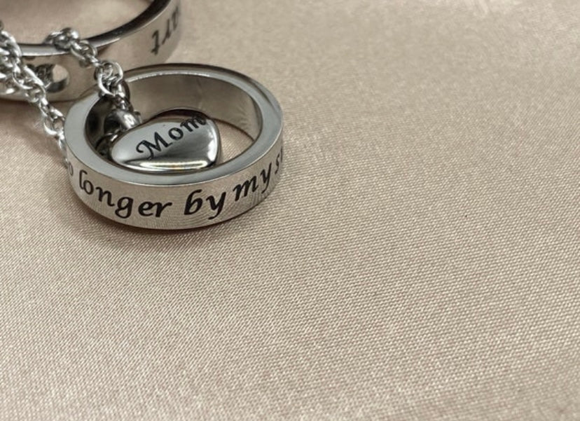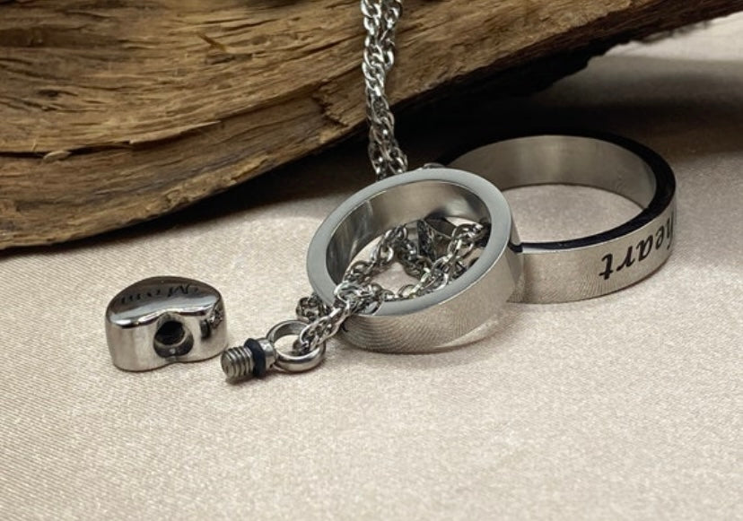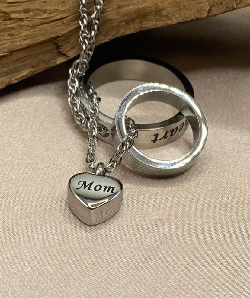 Mom Ashes Necklace – Heart Urn Pendant with 3 Rings Keepsake Jewelry
